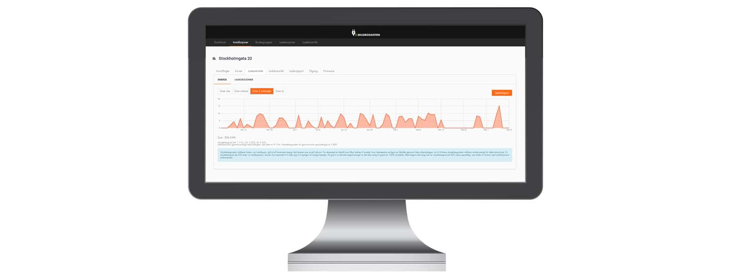 Onlineportalen ger full överblick och kontroll över förbrukning, passerkontroll, realtidsstatus för anläggningen och laddstationer. Det gör det lättare att upptäcka fel och åtgärda dem så att laddningssystemet bibehåller en hög drifttid och förutsägbarhet gällande laddning.