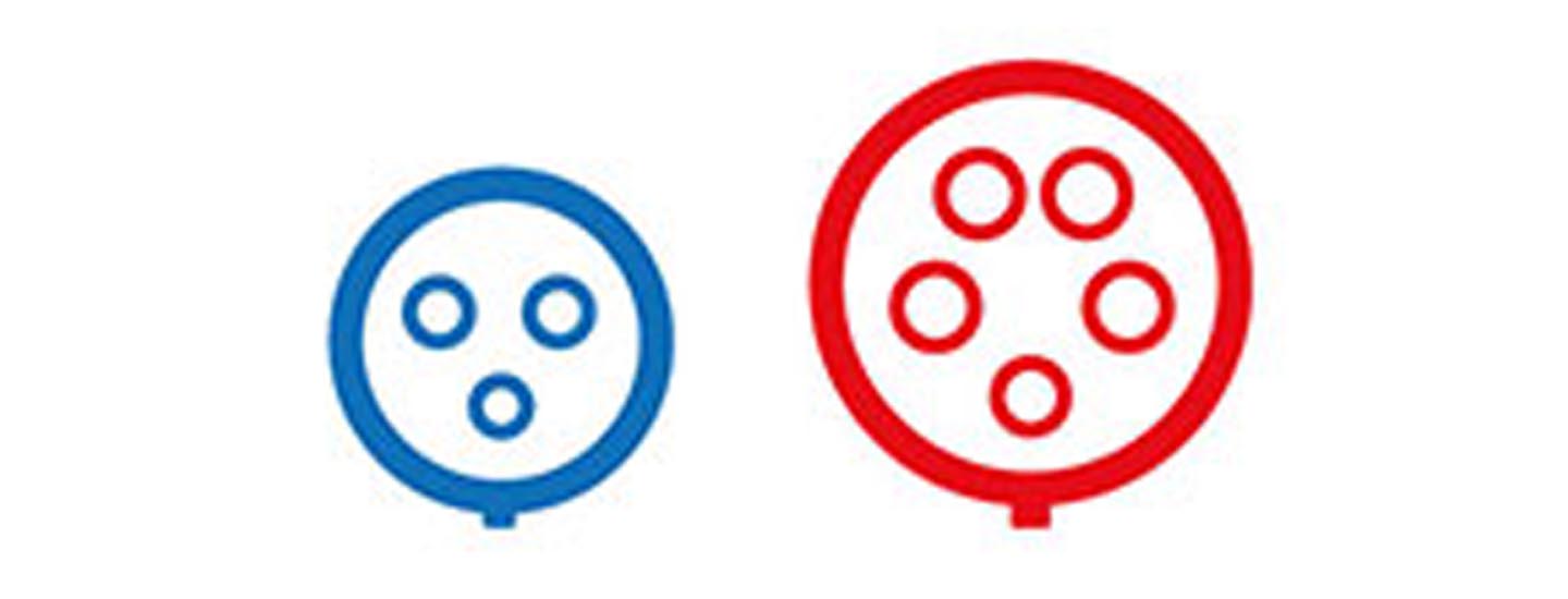 2) Stor 5-stift, 3-fas 400V - upp till 22kW (32A)